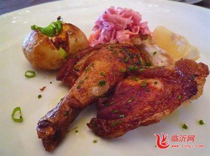 3)鸡装入烤盘后进烤箱烘烤, 胸向上;