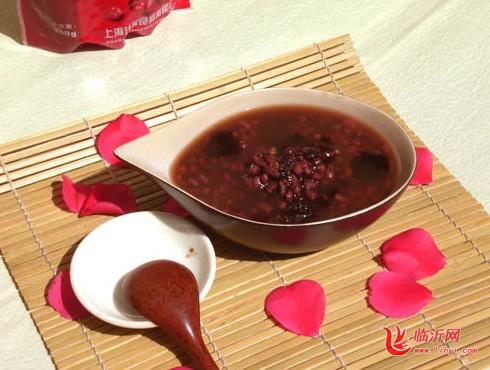 做法:红小豆加水煮至汤浓豆烂,加入红糖即可。