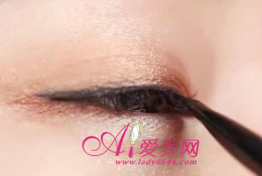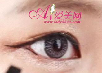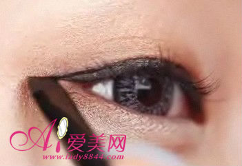然后轻闭眼睛在睫毛外也紧贴着画一条眼线。