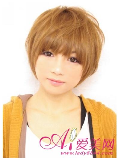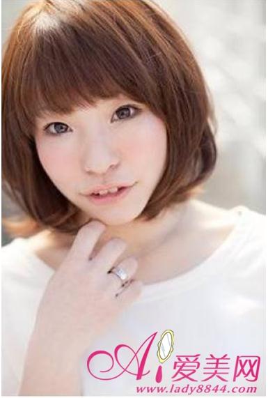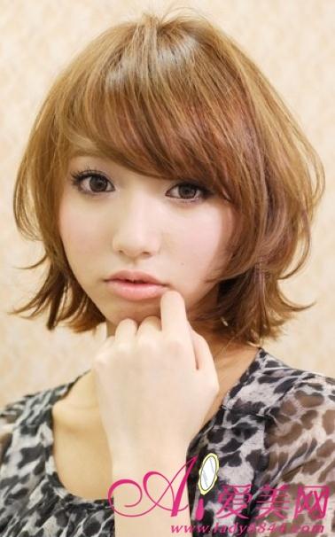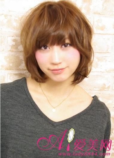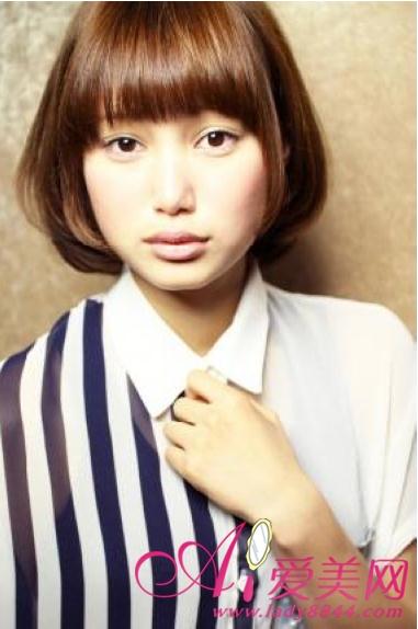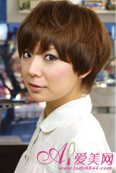 上重下轻的短发营造出椭圆形的可爱感,是日本mm很受欢迎的短发发型哦,贴服脸庞发丝可以起到修颜效果,碎碎的齐刘海为你可爱加分,心机的在头顶缭乱几缕发丝点缀整体更具日范。