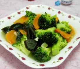 4、放入皮蛋和胡萝卜片拌匀,继续以大火煮至沸腾4分钟。然后倒入西兰花,与锅内食材一同拌匀煮滚
