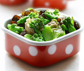 1、儿菜本身就很鲜美,搭配橄榄油和五花肉,味道十分香浓,所以不需要再加味精或鸡粉等其它的合成调味料了。