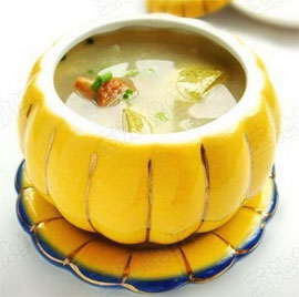 3、放入冬瓜块,继续煲30分钟,煲至汤色转白,关火后加入葱花即可