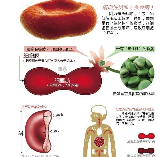 沈剑解释说,蚕豆病其实是俗称,医学名字叫溶血性贫血,就是血液里面的红细胞都被破坏了,导致了贫血等。
