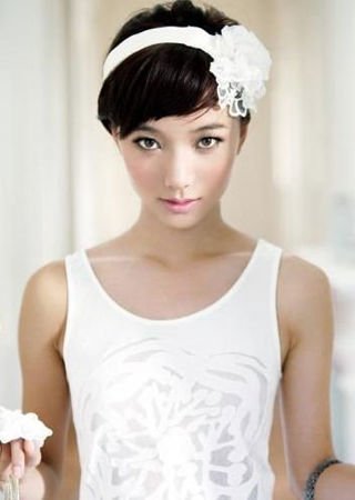 即便是短发也能打造出甜美的效果,将短发定型,戴上蕾丝花朵头箍,打造极致纯美的FEEL,看来短发在这个春日依然大热,新娘们不妨学学王络丹的短发造型!绝对俏美动人。