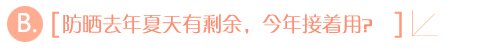 很多MM都有这样的认识,夏天需要防晒,过了夏天就不用了。而且,今年的防晒没用完,可以留到明年夏天用,反正没过保质期,OK的!殊不知,这样做真的是打错特错,首先,并非只有夏季需要防晒,其他季节虽然日照时间段,温度低,但是太阳却仍然存在。只要有阳光,就有紫外线,MM们白天外出的时候就应该使用防晒。另外,防晒霜一定要开启后尽快用完,以免其中的一些成分分解,而导致防晒效果的降低。最稳妥的做法就是,确保每瓶30g的防晒霜在一个月到一个半月左右的时间用完。
