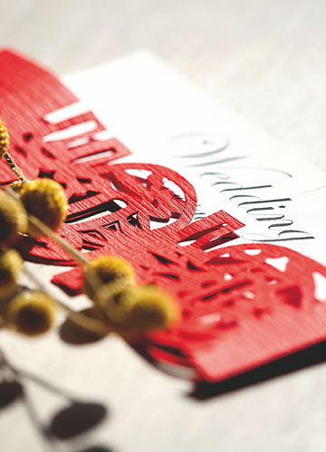 所以,当年轻的设计师房莹接触到婚礼喜帖设计师,第一个想到的便是中国传统的剪纸艺术作为设计的重要元素。中国的传统剪纸工艺均以红色为主体,不仅喜庆张扬,更释放出饱满的活力。与洁白传统的西式白色卡片相搭配,更彰显出中西结合的独具匠心,活泼又不失典雅。而剪纸作品上,手工制成的结婚日期与传统的红色大“喜”字交相呼应,更是透出一种传统工艺特别浪漫。