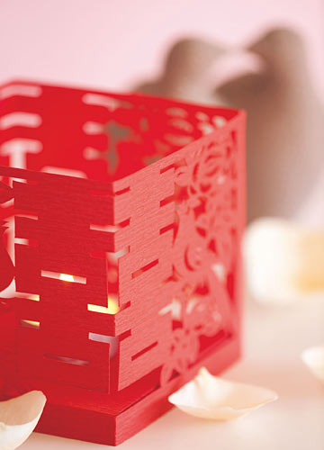 而且在日渐一样的糖盒制品中,也可以融入镂空剪纸的设计元素。如此喜庆的物品不仅简单而大方,而又与其他设计成为系统,自然会让婚礼客人印象深刻。新人们开始追求个性与美的结合,赋有时代感的手工喜帖,绝对是中式婚礼的不上之选。这种纸质糖盒也十分适合新人与亲朋好友一起,手工制作,并在这个美好的过程里,享受爱的设计,体会空气中弥漫着爱的气味,才是它最为浪漫的意义。正如中国的剪纸艺术一样,不仅可以用于装饰,更可以作为工艺品,永久保存。