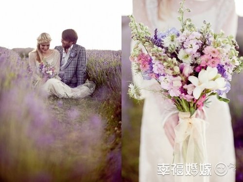 在薰衣草花海中办婚礼,可以完全就地取材,用薰衣草做装饰桌花,在薰衣草的香味中好心情都可以飘很远~