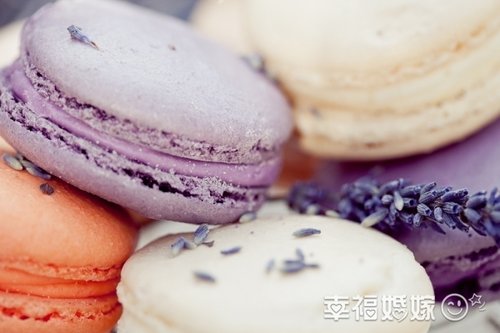 就连婚礼上的小甜点都是淡淡紫色,散发的幽幽薰衣草的清香。