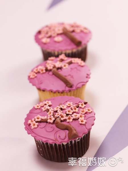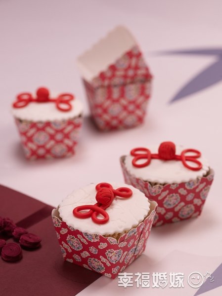 新中式蛋糕既能表达喜庆民俗的风貌,又不能失去蛋糕本身应有的可口外观。所以较多使用了中式图案元素,如传统喜字、写意茶具、旗袍盘扣等点明主题,而在颜色的运用上还是以柔和的粉红、粉绿为主,一款蛋糕上的用色不会超过三种,以清新的色调诱人食欲。另外,还用兰花、梅花等有中国传统特色的花卉作为装饰元素,以此契合婚礼应有的甜美氛围。