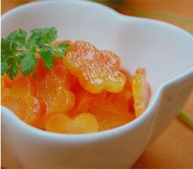 3、将煮熟的胡萝卜晾凉,加入适量的柠檬汁和蜂蜜(根据自己的口味调整酸甜度)拌匀。