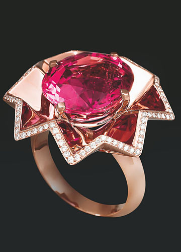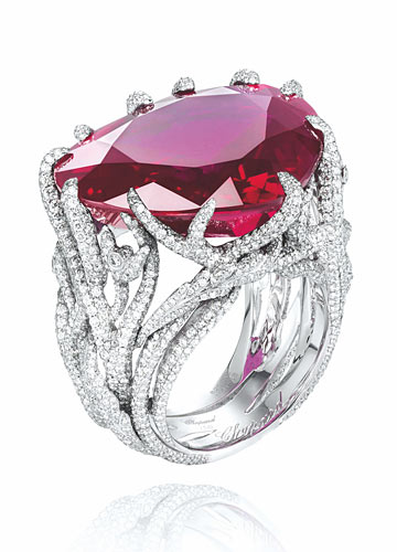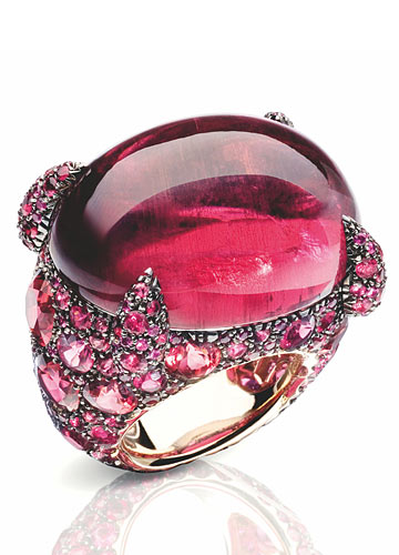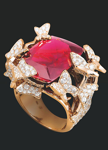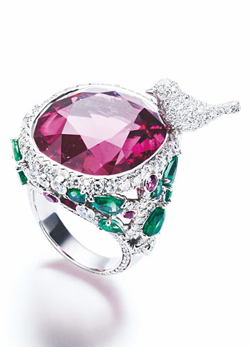 “Cocktail Ring”是20 世纪五六十年代美国禁酒令颁布后,叛逆的上流社会私办带有酒精饮料的Party,女士们在参加昏暗的鸡尾酒Party 时的佩戴高调的大宝石戒指以寻求异性关注。