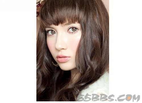 平刘海给我们的印象就是“可爱、年轻活力、女孩子气”,在妆容的打造上重点就要放在眼妆部分,打造出大眼妆的效果,让发型与妆容完美融合在一起。