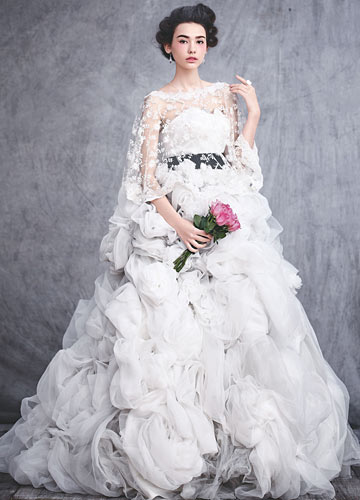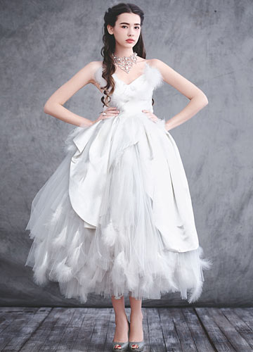 轻纱、丝缎、蕾丝、绒羽,公主的浪漫裙摆,永远是我们最美丽的想象,设计师将玫瑰花苞的动人曲线融入礼服裙之中,少女只需轻抬眼帘,静静伫立,便能为我们展现出复古年代玫瑰公主的风姿丽影。