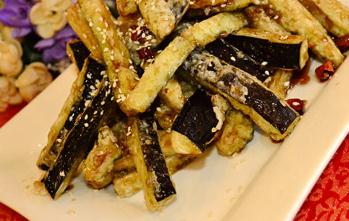 风味茄条:茄子的吃法有很多种哦,看着香气四溢的模样,这样风味十足的茄子条一定合您的胃口。