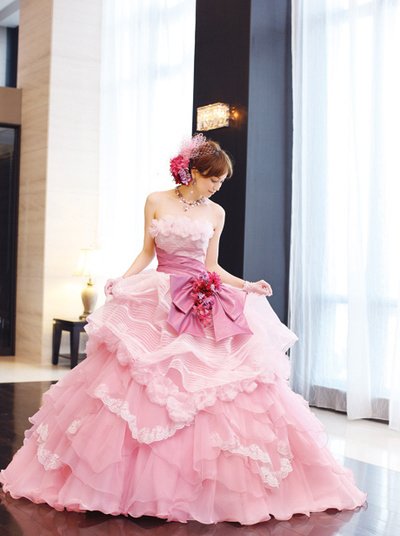 舞会型婚纱对幻想童话般婚礼的新娘来说是最完美的选择,尤其适合大型婚礼。它的设计感集中在腰部线条,对于苗条或梨型身材的新娘最适合。尽管舞会型婚纱端庄妩媚,但对两类新娘却是个忌讳:一类是个子较矮的新娘,由于没有足够的高度来平衡这款婚纱上的比例,反而使自身看起来更矮小;一类是胸部特别丰满的新娘,突出的胸部与撑开的裙摆很不协调,更谈不上美感了。
