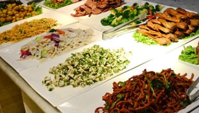 凉菜区:凉拌木耳、花生、茶叶蛋、木耳腐竹、西兰花、鸭头、鸡爪、鸡腿……