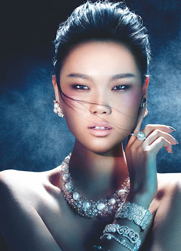 缕缕青丝在面前拂动,优雅姿态散发强大气场,那醉人的夜光映衬得珠宝更加动人闪亮。珠宝佳人融为一体,幻化成艺术品,发出美丽的光芒。