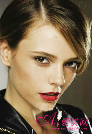 红唇绝对是脸部的重点,如果你觉得太简单的眼妆不能表现出一对美目,那么可以用强调睫毛和眼线,也可以用冷色调的黑、灰、银等,来做比较夸张的效果,但关键是,在眼睛部位不能使用多种颜色。
