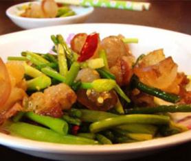 原料:蒜薹、腊肉、葱。