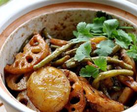 土豆1个、藕1节、豇豆1把、青椒3个(自己喜欢吃什么就放什么,鸡翅、腐竹、莴笋、蘑菇、芹菜等都好吃)。