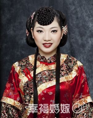 用大辫子取代了长发排,整体以辫子为主,在两侧固定,刘海是整个发型的重点,注意长度要超过头顶亦不可弯曲。