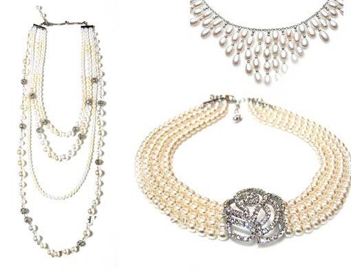 以珍珠串链为例,就很适合搭配一字领、细肩带、卡肩式以及罩杯式的婚纱礼服,由珍珠串链的点缀,不仅能突显出新娘子颈部的优美线条,更能增添婚纱礼服高贵典雅的气质。