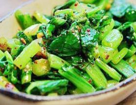 2、当水滚开后,火调小迅速将青菜苔放入开水中,保证每一根菜都烫到,但时间不能长。尤其不能将菜薹烫熟。