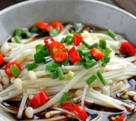 用料 :金针菇 小红椒 葱 生抽 白糖 盐 食用油