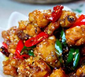 用料 :肉鸡腿4只 青椒3只 红尖椒3只 干辣椒10只 大蒜10瓣 淀粉少许 酱油1大匙 料酒1匙 糖少许 盐适量