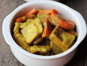 主 料: 实豆腐2块,洋葱1/2个,番茄2个,葱1棵,蒜蓉1茶匙,咖喱粉2茶匙。