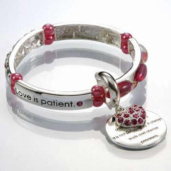 镶嵌着红色宝石的宽大手镯光泽温润,镶满宝石的心星吊坠为整个手镯增添了浪漫爱意。这款非常适合正沉浸在热恋中的女孩,可以将你与爱人的爱情密码刻在宽大的手镯表面,让你们的爱情永不磨灭。