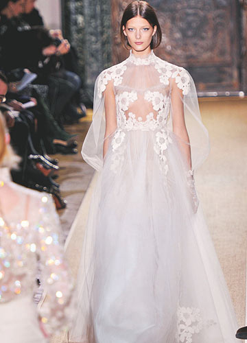 2012春夏巴黎高级定制时装周刚落下帷幕,各大设计师不约而同地选择让美丽如幻的婚纱轻盈地飘在T台上。个性的、唯美的、艺术感的、公主型的……各式婚纱让人应接不暇,快好好感受大师的设计吧,为自己的嫁衣寻找最美的灵感。