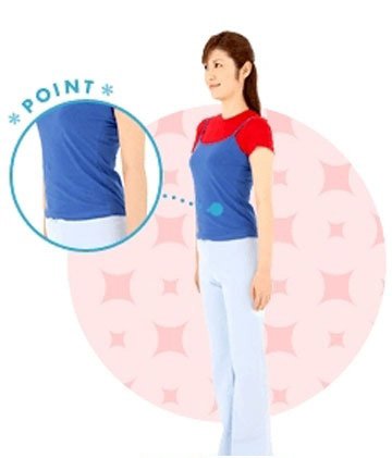 左右脚后跟紧贴站直全身,肩胛骨下压