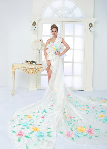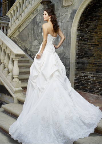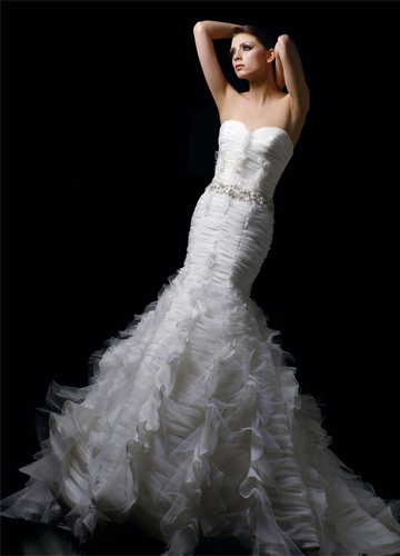充分利用婚纱款式:高腰婚纱或是抹胸婚纱。
