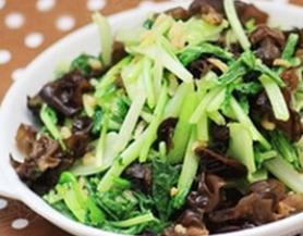 原料:青菜250克,木耳10朵,虾米20克