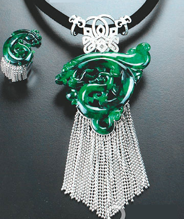 优质翡翠大多来自缅甸,均选用商业价值颇高的,珠宝设计师会根据原石天然形态来设计翡翠作品,并邀请雕刻资历超过二十年的宝玉石雕刻大师进行精工雕琢。由于每一件设计作品均为孤品,使得每一件产品都是独一无二的艺术品。