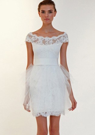 短款婚纱设计能更生动的彰显出小女人的可爱,蕾丝领边高腰设计以及纱织的外加伞裙,新娘甜美俏丽的气质就这样轻易打造出来,此款婚纱长度适合身材娇小的新娘。