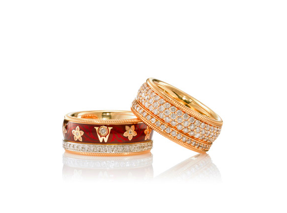 华洛芙珠宝早在创立之际便为英国皇室、欧洲贵族和沙皇定制珠宝,在此次全新的龙年红色祈愿系列指环上,采用了皇家贵族特有的花纹设计。为了迎合中国传统的农历新年,华洛芙以独创的冷珐琅技术,绘制了华美高贵的红色。冷珐琅独特的透视感和耐磨性,将使这抹龙年红色在未来的岁月中玲珑剔透、历久如新。