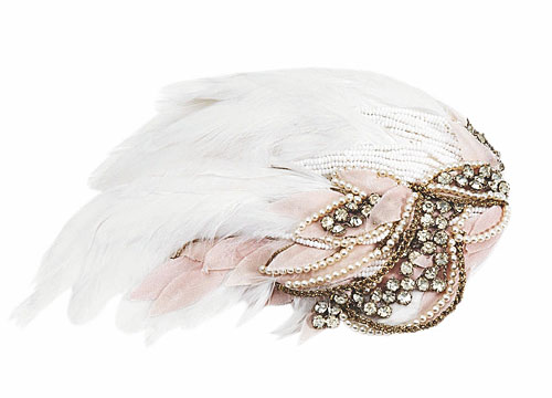 粉色丝绒与闪钻的结合,搭配轻柔羽毛,做一个精致复古的新娘。