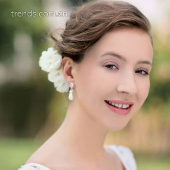新颖造型使整个发型风格既简洁干净,又富有装饰性,如蝶翼般精巧的发型有着童话般的美丽幻想,纯真俏丽,而极具雕塑感的设计又让新娘有了几分与众不同的个性表达,在阳光明媚的清新户外,造型古典而充满青春气息的发型,能够赋予新娘温柔甜美、活泼俏丽的气质。