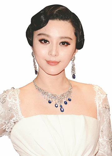 薄纱褶皱礼服,宛若女神,搭配大Piece 的彩宝项链及耳环,镜头前的回眸一笑最为亮眼。