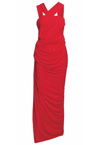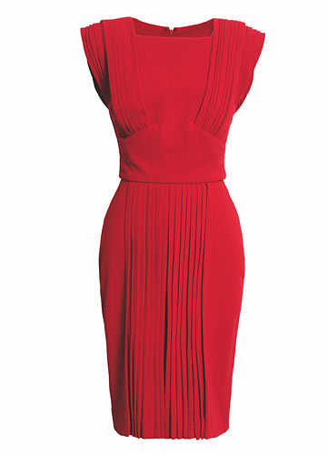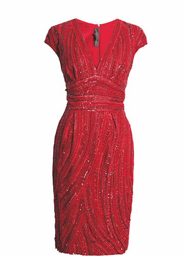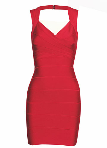 2. 红色装扮最为性感热辣,但深V紧身剪裁设计的礼服裙,不宜出现在婚礼派对上。