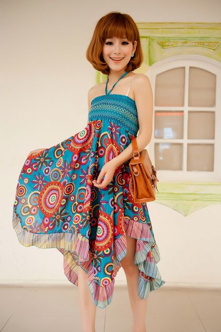 波西米亚风格,下摆是不规则裙摆,今年非常流行的一个款式哦