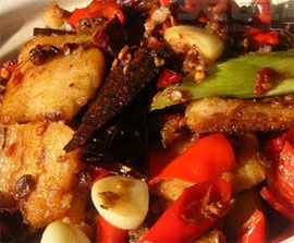 4.凉油(要多放一些哦)放入花椒、大料、桂皮炸出香味后放入干辣椒、剁椒、红椒翻炒片刻,接着放入陴县豆瓣、老干妈油泼辣椒各一大勺,然后加葱段、蒜片、炸好的鱼翻炒,均匀后放入提前用洋葱、青椒垫底的砂锅中。