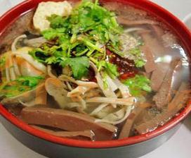 切成小块或(条)的鸭血(有时也用猪血代替)和粉丝。
