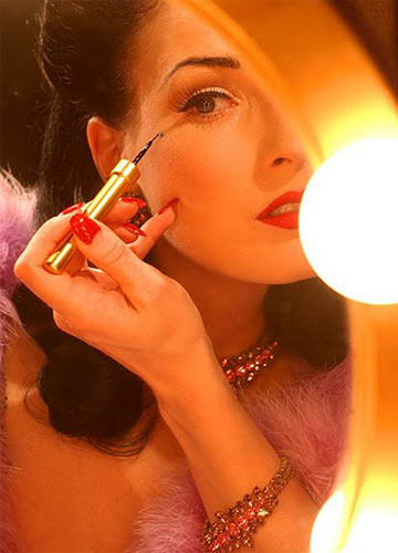 范冰冰为了打造复古妆容,在右颧骨上侧点了一颗美人痣, 白皙 的皮肤上独有的一颗痣能够迅速抓住人们的眼球,红唇、亮发已然够出众,但一颗恰到好处的痣绝对起到了画龙点睛的作用,让范冰冰的性感指数飙升。如果你也想要打造复古妆容,不防学习下范冰冰的做法。