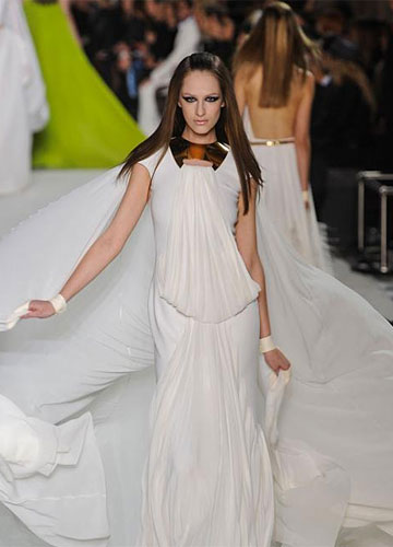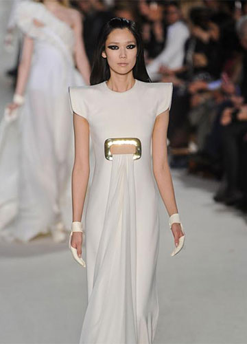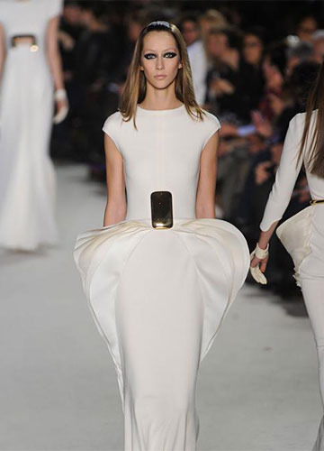 如果想要追求更多的个性,那么像斯蒂芬·罗兰 (Stephane Rolland) 高级定制秀场上这样的立体感设计,值得你挑战一下,腰间、胯部如花瓣一般绽开的褶皱,强势却又不失女性的妩媚。