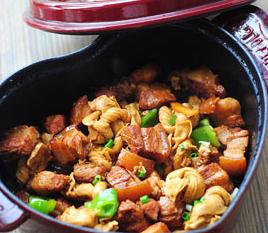 12、炖至五花肉软熟,转大火收稠汤汁,加少许盐调味,撒葱花即可。